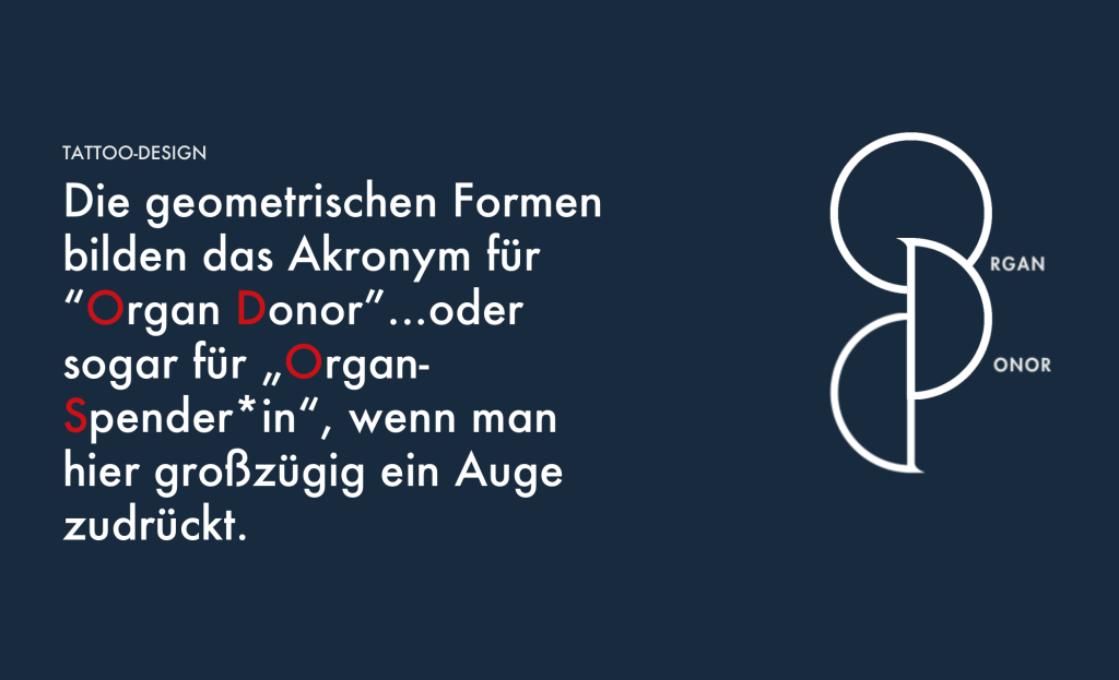 #OptInk Ein Tattoo, das nicht nur deine Zustimmung zur Organspende, sondern auch deine Solidarität mit den Wartepatient:innen ausdrückt! In Deutschland warten rund 10.000Menschen auf eine Organtransplantation. Auch in diesem Jahr werden circa 1.000Menschen ihr lebensrettendes Organ nicht rechtzeitig bekommen. Um mehr über Organspende und den Organspende Ausweis zu erfahren, klickt einfach HIER.