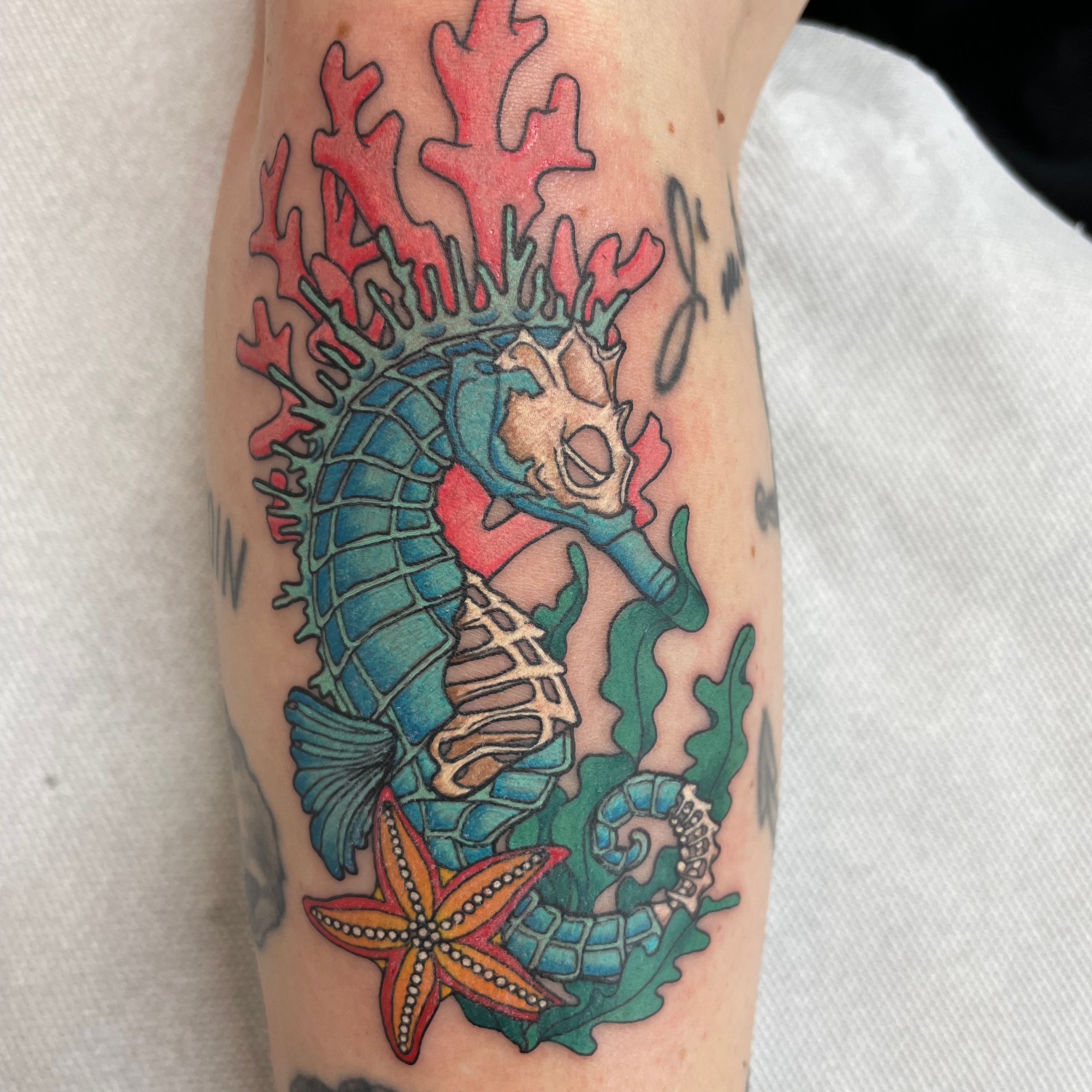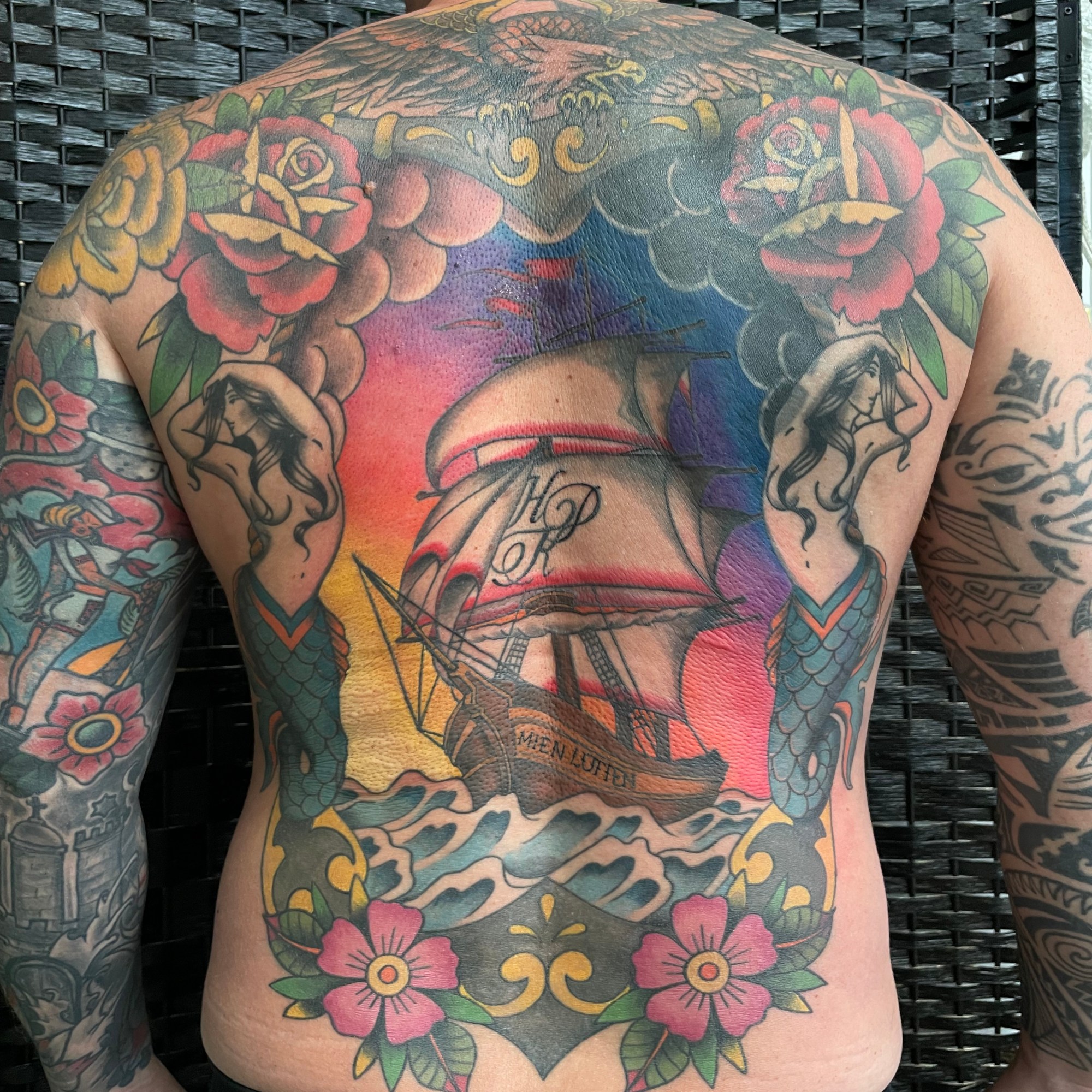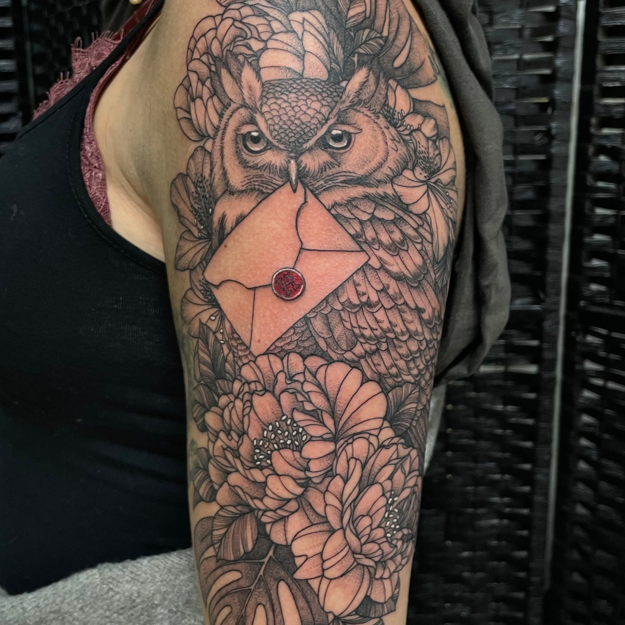 Als ursprünglich gelernte Bühnenmalerin und Bühnenplastikerin an der Hamburger Staatsoper, hat Rebecca vor etwa neun Jahren das Tätowierhandwerk erlernt und Anfang 2023 die Geschäftsführung des Studios übernommen.