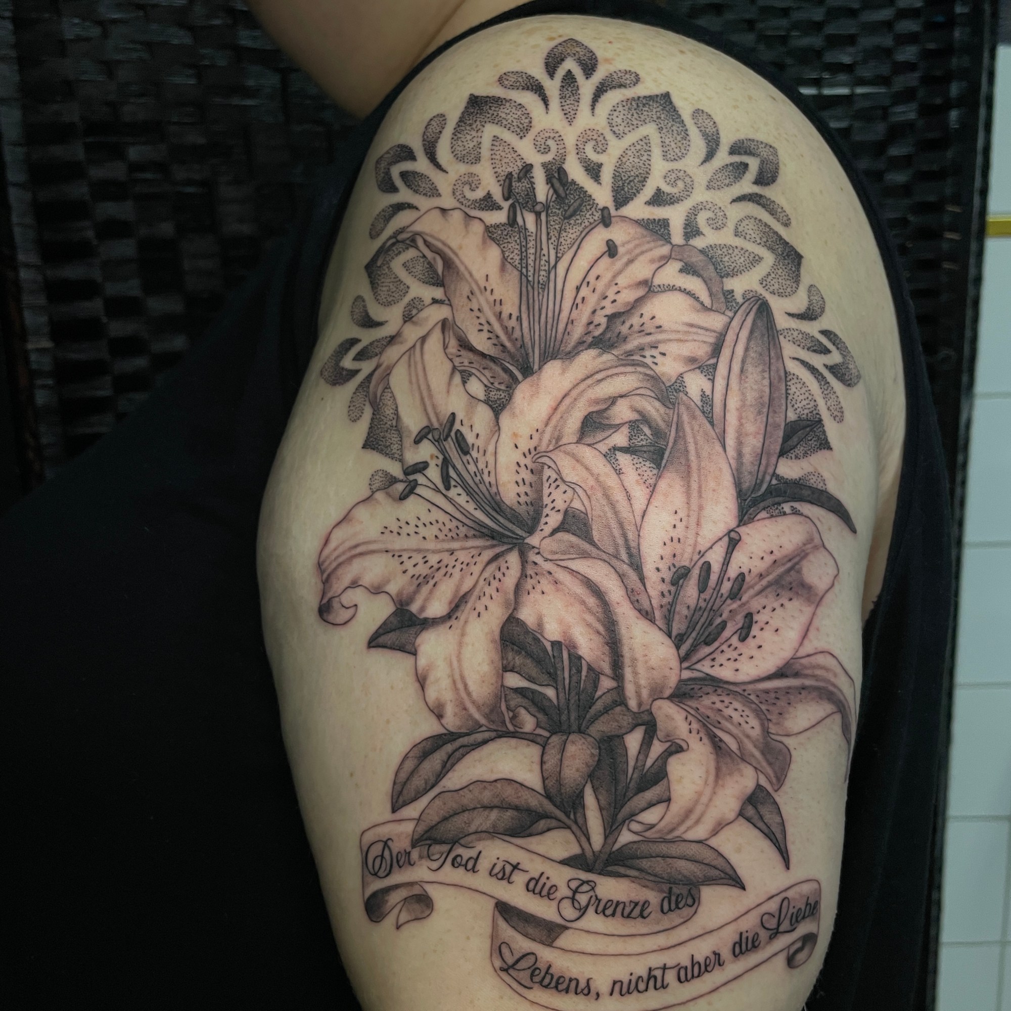 Stile: Fineline, Realistic, Mandala und Watercolor.